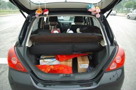 兩廂?怂箵碛型級別車型中最大的寬度,基本可以和中高級車型相比,所以后排乘坐三個成年人基本上不顯局促。但在腳部自由度上,我們從下面的圖片可以直觀的看出,長度和軸距都占優(yōu)勢的?怂乖诳臻g上并沒有騏達自由。歸根結(jié)底是因為日產(chǎn)在車型設(shè)計上將發(fā)動機前移,后排座椅盡量向后靠攏,加上高頂?shù)脑O(shè)計,“MM”理念讓騏達出現(xiàn)了前所未有的寬裕感受。但是這樣的設(shè)計留給后尾箱空間就不多,騏達無法達到?怂沟男欣钕淇臻g。
