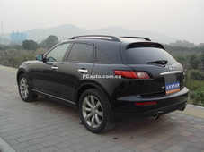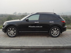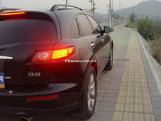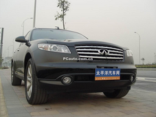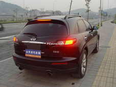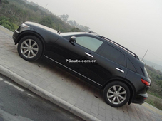 無限的外觀一看上去就叫人興奮:全黑的車身,前臉看上去十分的有攻擊性,傳統(tǒng)的Infiniti寬大的格柵、標準霧燈、扁平的斜四方行氙氣前燈是點睛之作,給人一種勢不可擋的霸氣感覺,大大的廠徽鑲在中間,告訴你我是品質(zhì)與信心的保證。側(cè)身望去像極了充滿肌肉的猛男,20吋巨型輪圈襯托下,粗獷的風(fēng)味不言而喻,一付蓄勢待發(fā)的模樣就呈現(xiàn)在眼前了,斜向車頭方向的C柱,不僅為FX的流線造型加分,也增添了些許兇悍的架勢。后車窗的玻璃則采用了現(xiàn)在許多SUV車款常用的暗色處理,車尾部分則和車身曲線一樣、充滿了圓滑的肌肉感,并且沿著尾窗周圍,尾燈組也和頭燈一樣、都是細長狀的造型,也一樣入侵到后葉子板的位置,直截了當(dāng)?shù)睾蛙囶^燈來個前后呼應(yīng),尾部還有兩個單獨、巨大的鉻排氣管讓你感覺到它濃重的跑味。