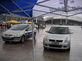 PCauto記者前線報(bào)道:在26日的下午,我們?cè)谡箯d的外部可以看到,有許多的廠家組織了媒體和客戶的試駕活動(dòng),我們可以看到其中包括了:標(biāo)致307、日產(chǎn)新陽(yáng)光、日產(chǎn)帕拉丁、長(zhǎng)安鈴木雨燕、福特嘉年華、日產(chǎn)天籟、本田CR-V、還有耀眼的奔馳CLS350。